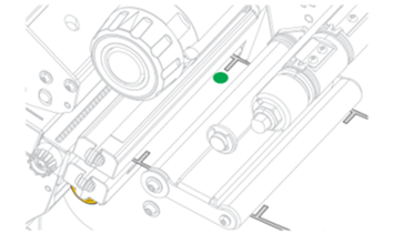 3. If necessary, turn the gold transmissive sensor adjustment wheel to move the sensor until it is positioned at a notch or hole in the media.