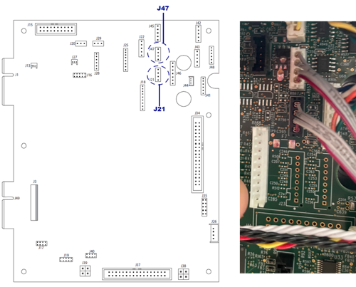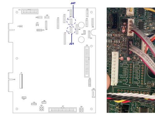 - See images below - disconnect the media sensor cable from J21 and J47 on the main logic board (MLB).
